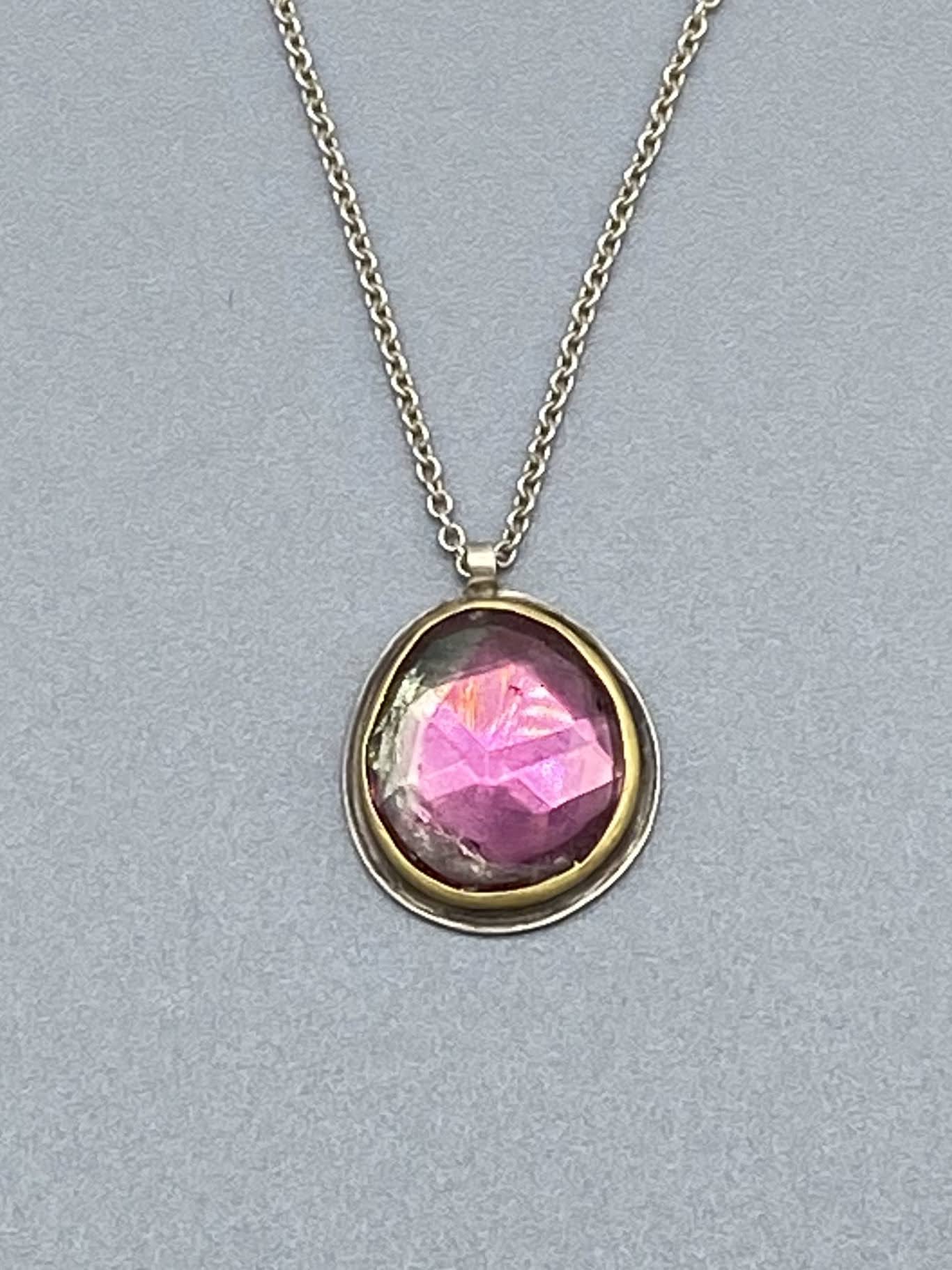 18ct Gold Pink Tourmaline Birthstone Petal Pendant Chain October Lilia Nash from lilianashjewellery.com